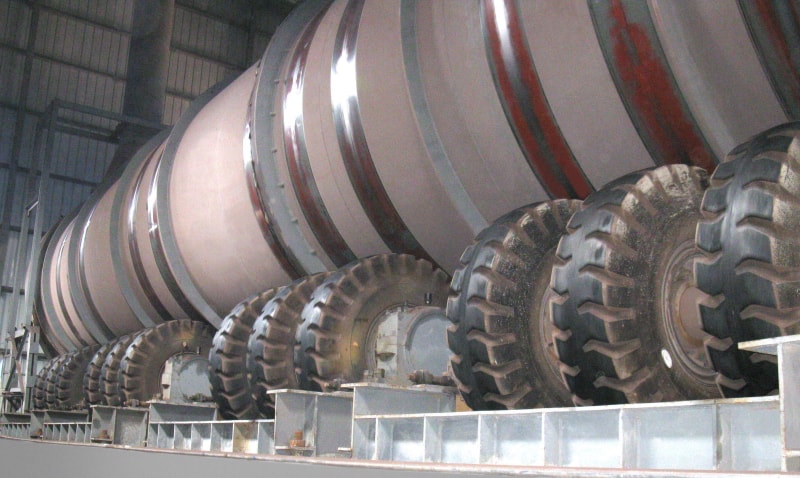 16.00-25規(guī)格海綿實芯輪胎配套在日照鋼鐵有限公司3.4米x14米混料機上